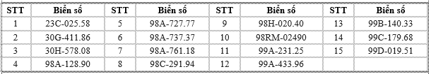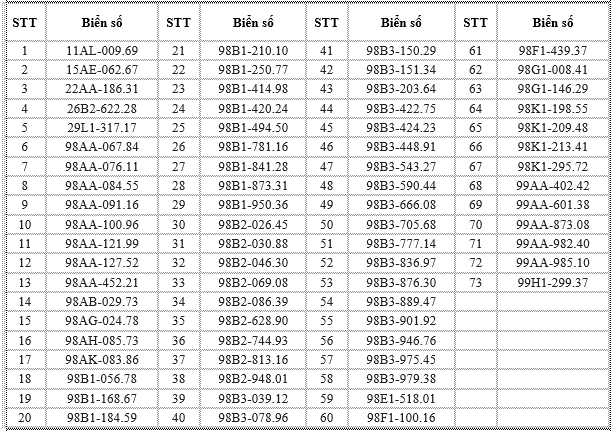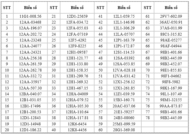 Các chủ phương tiện có tên trong danh sách chủ động liên hệ Phòng Cảnh sát giao thông Công an tỉnh Bắc Ninh hoặc các đội cảnh sát giao thông phụ trách địa bàn để giải quyết vi phạm theo đúng quy định. Các trường hợp cố tình chậm trễ sẽ bị xử lý nghiêm theo luật định.