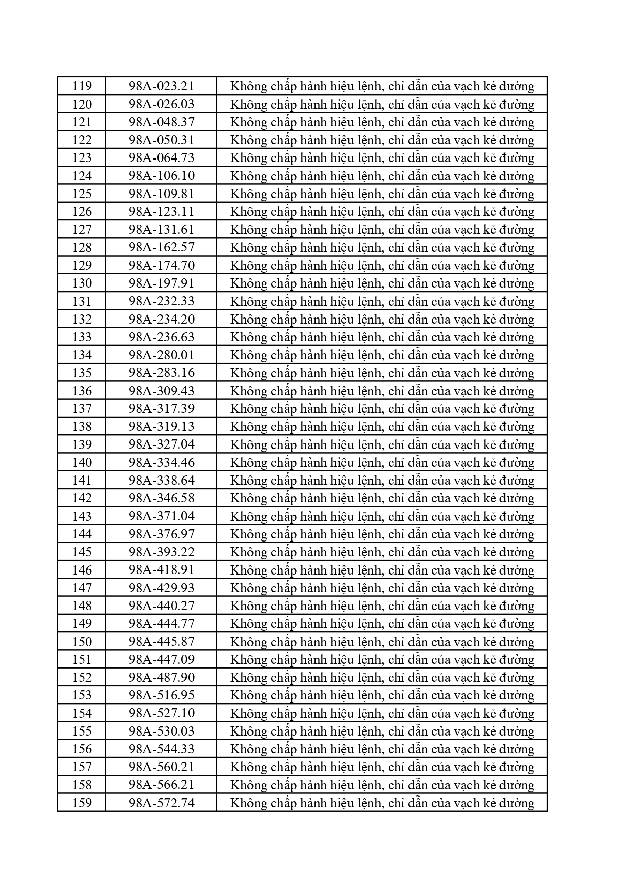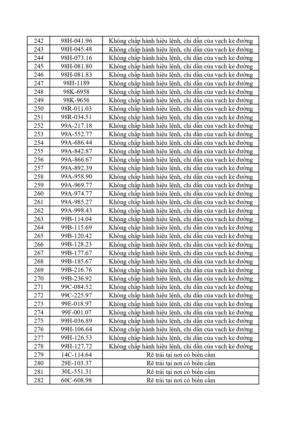 2. Vi phạm vạch kẻ đường: 215 trường hợp